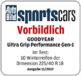 • Verringertes Aquaplaning-Risiko Des UltraGrip Performance-Reifens dank der hydrodynamischen Rillen.