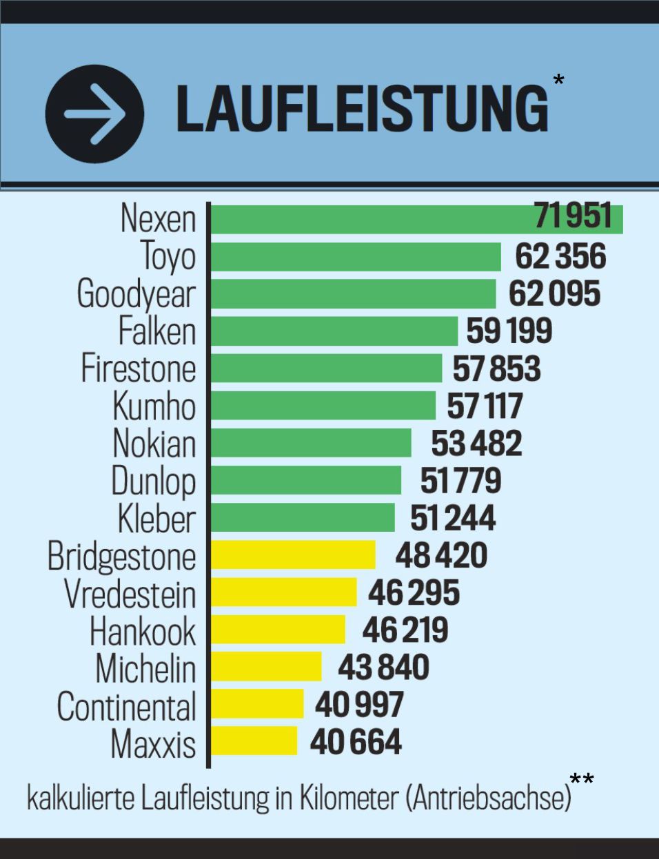 Το αποτέλεσμα της δοκιμής AutoBild 2022 (τεύχος 39-2022) έδειξε ότι το Goodyear Vector 4Seasons Gen-3 προσφέρει την υψηλότερη χιλιομετρική απόδοση στην κατηγορία ελαστικών για όλες τις εποχές σε σύγκριση με τις άλλες επωνυμίες premium ελαστικών που συμπεριλήφθηκαν στη δοκιμή: Bridgestone Weather Control A005 Evo, Continental AllSeasonContact, Dunlop Sport All Season, Michelin CrossClimate 2, Nokian Seasonproof, Pirelli, Vredestein Quatrac. Αυτοκίνητο δοκιμής: Volkswagen Polo. Μέγεθος δοκιμής: 195/55R16 91V. Τα αποτελέσματα ενδέχεται να διαφέρουν ανάλογα με τις οδικές και καιρικές συνθήκες.