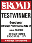 The UltraGrip Performance SUV Gen-1 was the Off Road Magazine SUV Winter Tyre Test winner out of the 6 brands tested in the October 2020 issue.