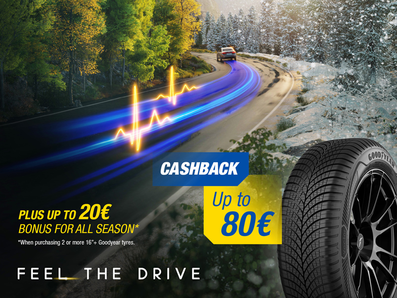 Up to €80 Cashback & All Season bonus when purchasing 2+ Goodyear Tyres