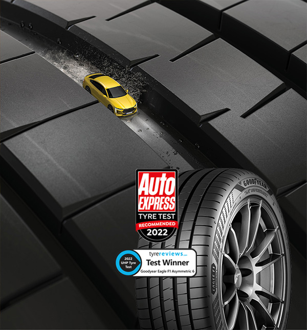 The ultimate driving season deserves the ultimate tyres. The Eagle F1 Asymmetric 6 adapts to your car and dampens noise, so it's just you and the road. And with wet-braking pro technology, even when the summer weather doesn't deliver, your tyres always will.