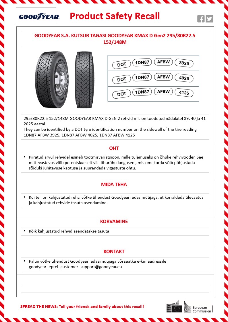 Goodyear on algatanud ohutusalase tagasikutsumise rehvidele: