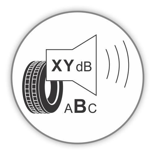Renkaan tuottaman ohiajomelun taso desibeleinä. Melutaso on luokiteltu A:sta (hiljainen) C:hen (meluisa).