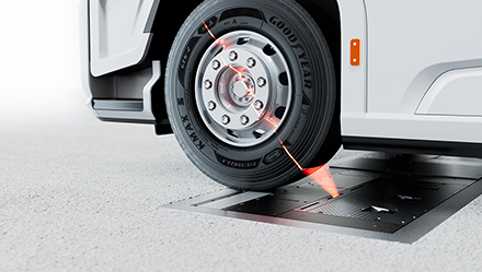 Constitué d’une plaque métallique fixée au sol intégrant des caméras, des lasers et des capteurs sophistiqués, le système Goodyear CheckPoint lit les informations relatives aux pneumatiques lorsqu’un véhicule passe au-dessus. Une technologie avancée interprète les données en quelques secondes et vous transmet une évaluation précise de la pression du pneu, de la profondeur restante de la bande de roulement des pneumatiques, de la charge sur l’essieu* et du poids total du véhicule*.