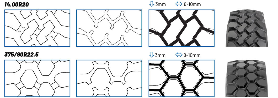 Pneu hors route conçu pour diminuer les échauffements à vitesse élevée, parfaitement adapté aux applications militaires et aux services d’urgence.