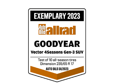 12022-ben, 2021-ben és 2020-ban az Auto Bild tesztjein a Goodyear Vector 4Seasons Gen-3 abroncsok biztosították a legnagyobb futásteljesítményt a négy évszakos szegmensben, összehasonlítva a többi vezető gyártó által kínált abroncsokkal 2 (A vezető abroncsmárkák piaci részesedés alapján kerülnek meghatározásra Európa-szerte).