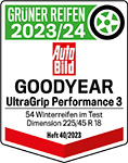 Goodyear UltraGrip Performance 3 è un pneumatico invernale ad alte prestazioni progettato per essere utilizzato su autovetture e SUV. È stato progettato per offrire una trazione e una tenuta di strada eccellenti in condizioni di neve e ghiaccio, oltre che su strade bagnate.
