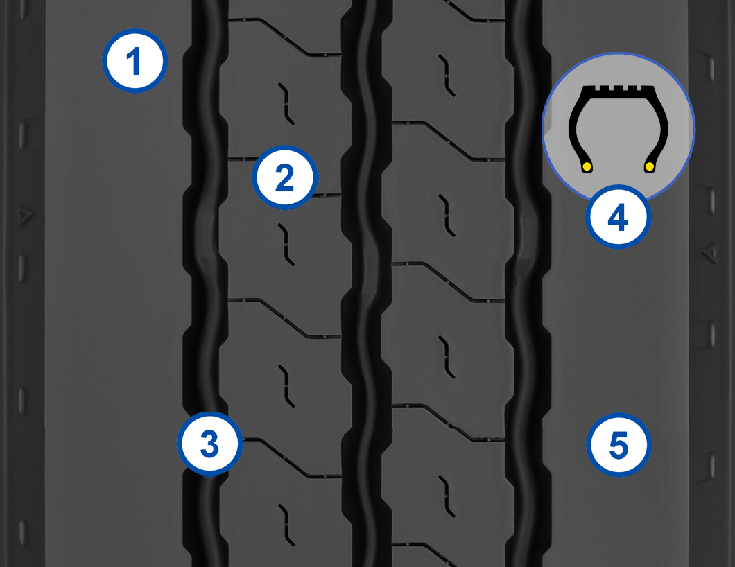> Robusto battistrada con chilometraggio elevato, usura uniforme e bassa resistenza al rotolamento.