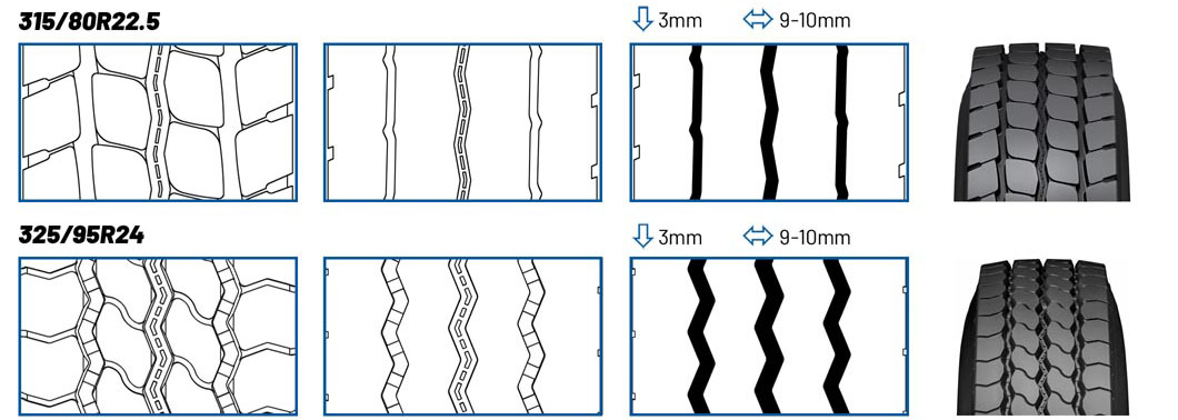 Robusti disegni del battistrada con massicce nervature delle spalle per gestire le applicazioni più impegnative con attività miste