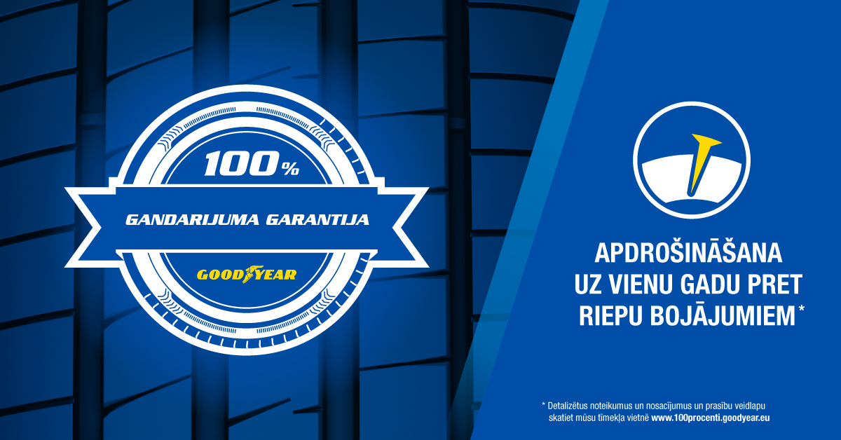 Goodyear gandarījuma garantija ir izstrādāta, lai sniegtu pārliecību, ka esat izvēlējies vienas no labākajām riepām, kādas pašlaik ir pieejamas!