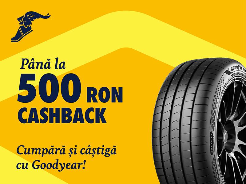 Ești gata să primești cashback? Cumpără un set de anvelope Goodyear, înregistrează-te pe site și beneficiază de cashback garantat de până la 500 RON.