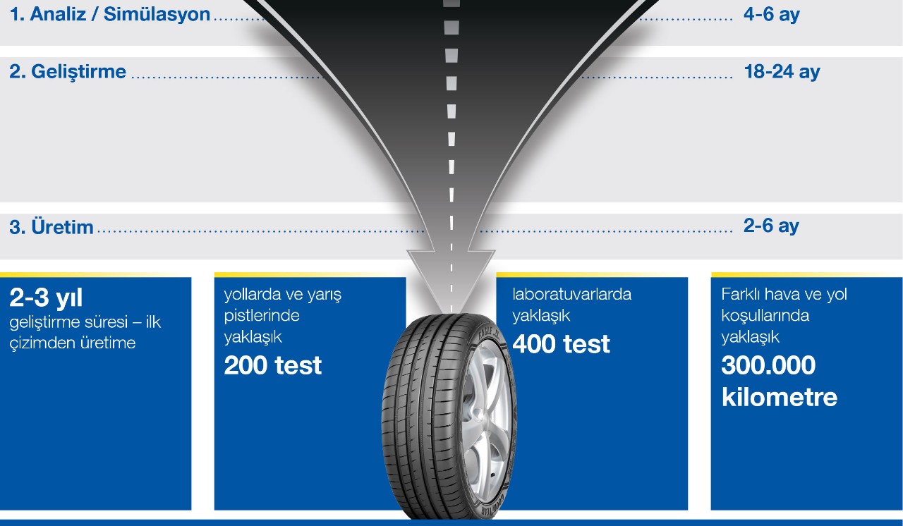 Otomotiv mühendisleri ve lastik tasarımcıları, tasarım sürecinin başından itibaren birlikte çalışarak araç için özel olarak tasarlanmış bir lastik ortaya çıkarır.